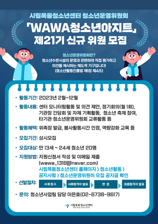 | [¸ðÁý] û¼Ò³â¿î¿µÀ§¿øÈ¸ 'WAWAû¼Ò³â¾ÆÁöÆ®' Á¦21±â ½Å±Ô À§¿ø ¸ðÁý (~»ó½Ã¸ðÁý) | ||