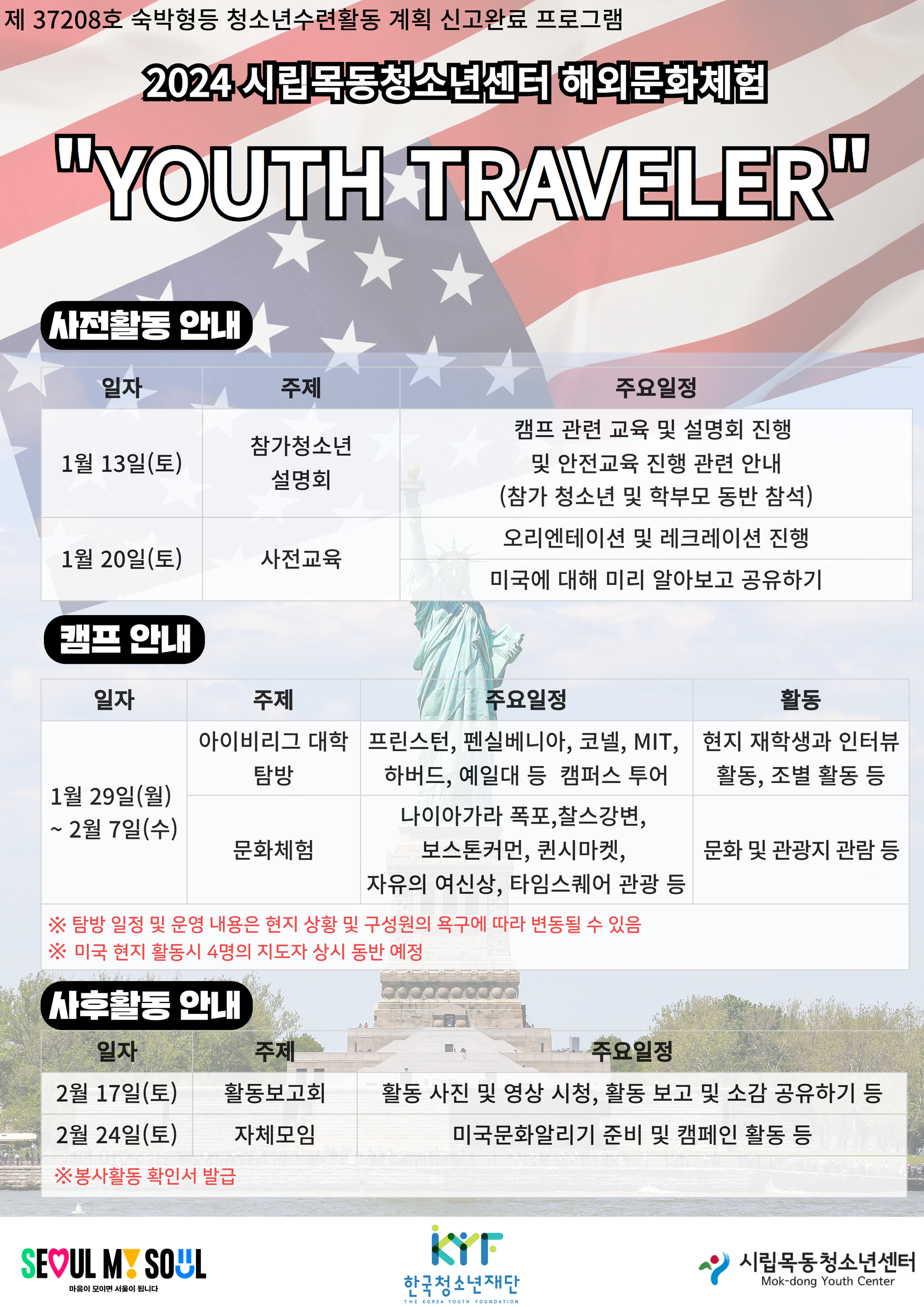 | [Æó°] 2024 ½Ã¸³¸ñµ¿Ã»¼Ò³â¼¾ÅÍ Ã»¼Ò³âÇØ¿Ü¹®ÈüÇè 'YOUTH TRAVELER' | ||