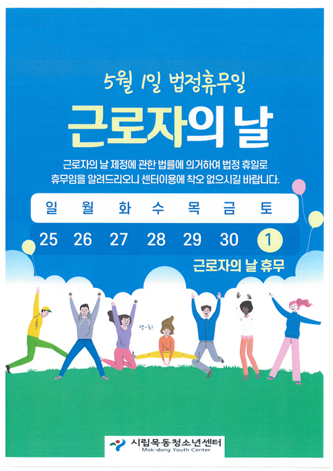 | ½Ã¸³¸ñµ¿Ã»¼Ò³â¼¾ÅÍ ±Ù·ÎÀÚÀÇ ³¯ ÈÞ°ü¾È³» | ||