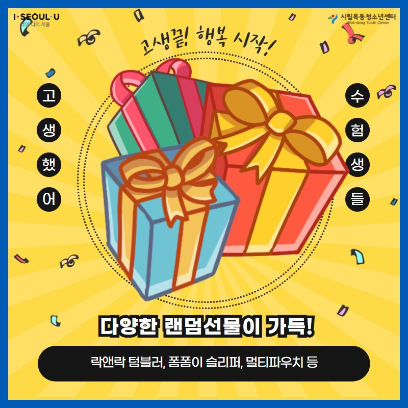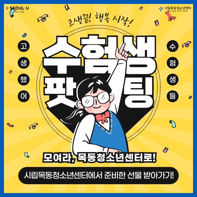 | 2021³â °í»ýÇÑ ¼öÇè»ýµé ¸ð¿©¶ó! ¸ñµ¿Ã»¼Ò³â¼¾ÅͰ¡ ½ð´Ù! | ||