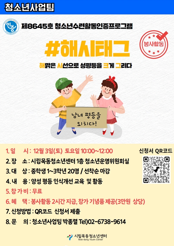| ÀÌÀü±Û | [¸¶°¨] Á¦9153È£ û¼Ò³â¼ö·ÃȰµ¿ÀÎÁõÇÁ·Î±×·¥¡¸¹Ù¸¥¸»·Î ´ÙÇÔ²² ·¿Ã÷°í!¡¹Âü°¡ÀÚ ¸ðÁý |