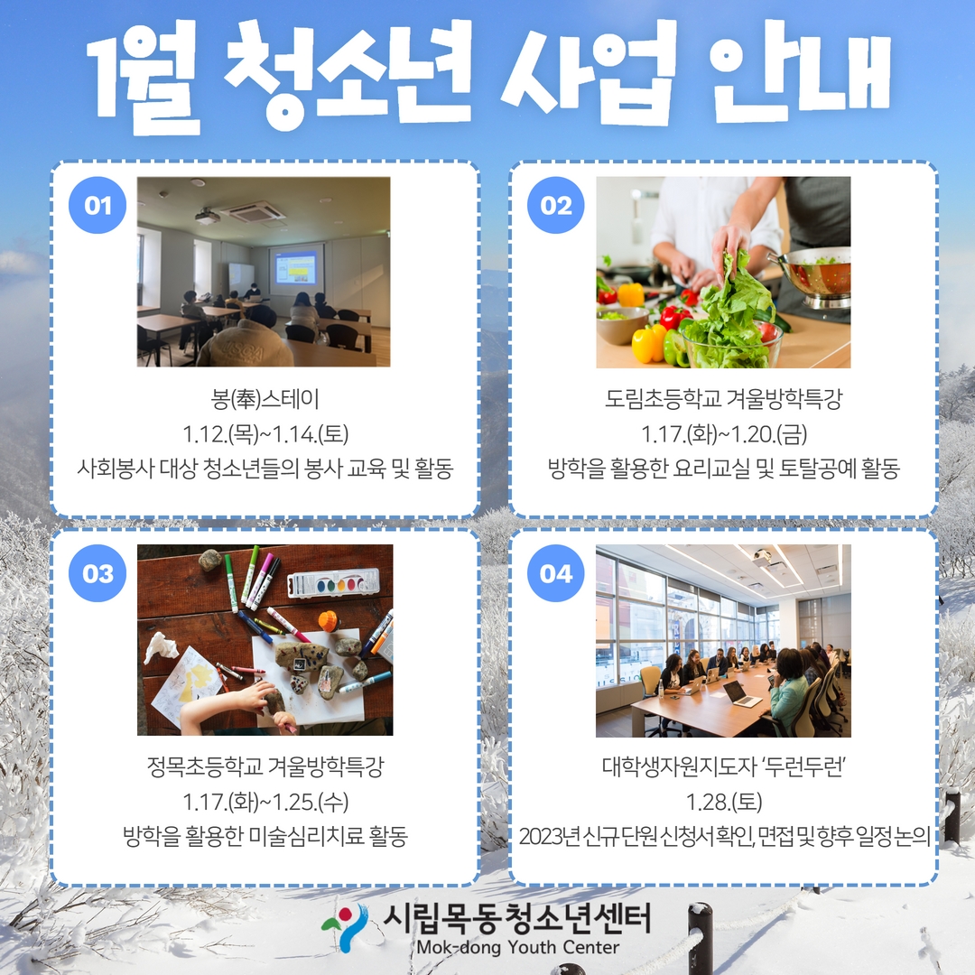 [½Ã¸³¸ñµ¿Ã»¼Ò³â¼¾ÅÍ] 2023³â 1¿ù û¼Ò³âȰµ¿ °ü·Ã ¾È³» | ||