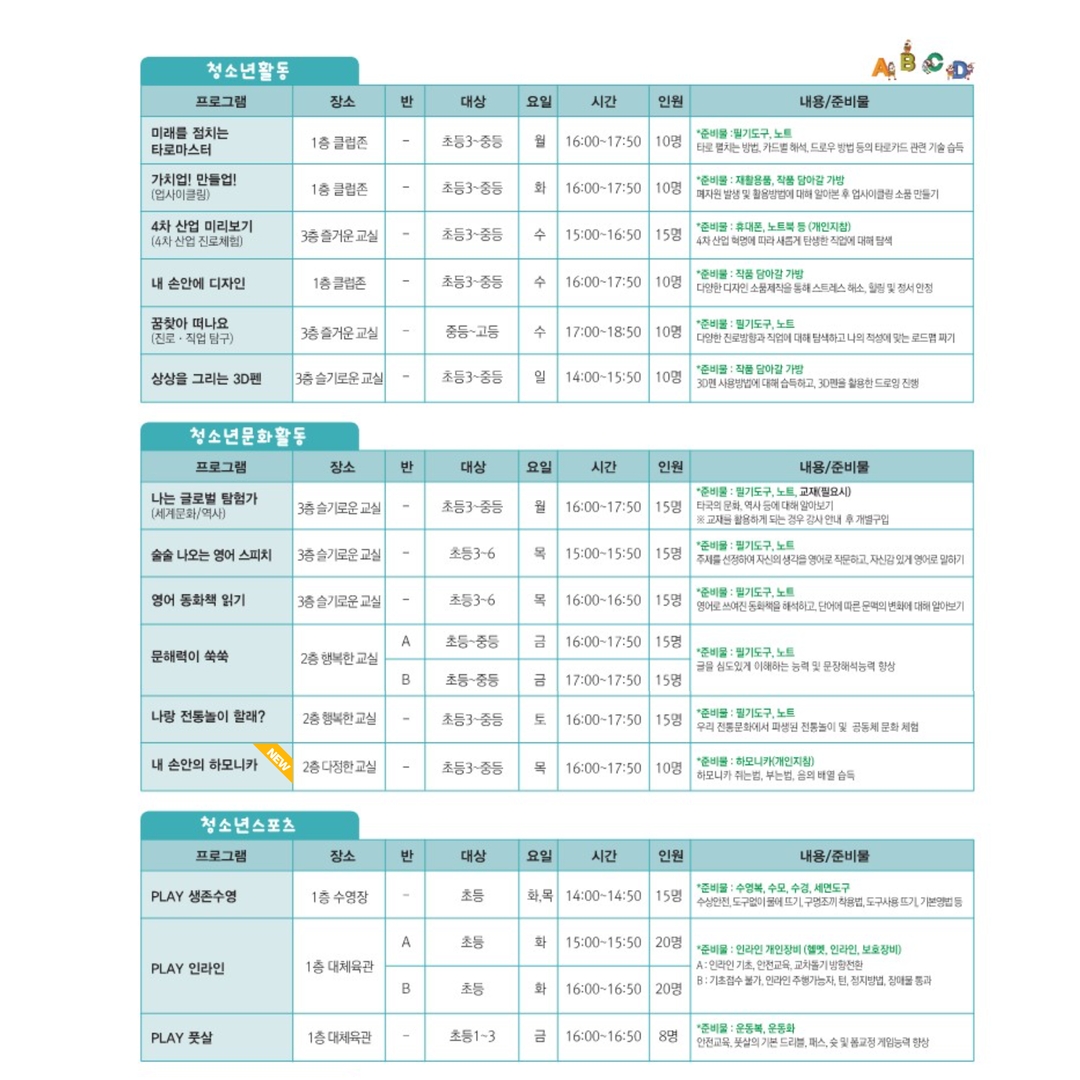 | û¼Ò³âÀü¿ë½Ã°£Á¦ WAÇà 2023³â 9¿ù ÇÁ·Î±×·¥ ¾È³» | ||