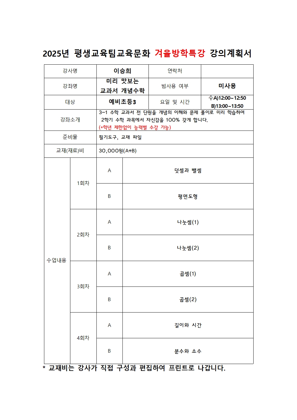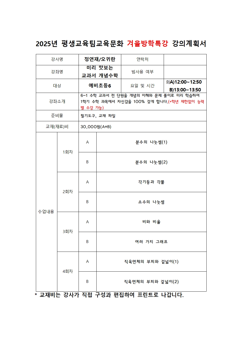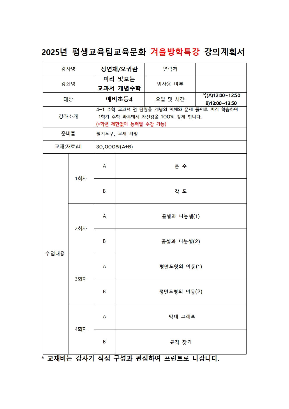 | 2025³â~2026³â °Ü¿ï¹æÇРƯ° °Àǰèȹ¼(¼öÇаúÇÐ(2)) | ||