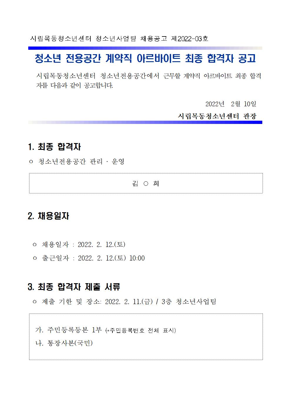 | 2022³â û¼Ò³âÀü¿ë°ø°£ °è¾àÁ÷ ¾Æ¸£¹ÙÀÌÆ® ÇÕ°ÝÀÚ °øÁö | ||