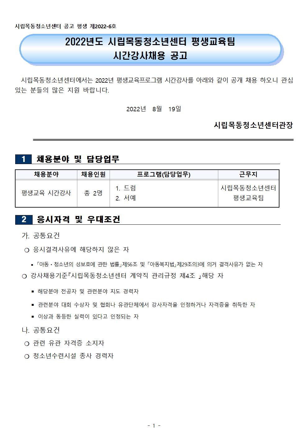 | ´ÙÀ½±Û | [½Ã¸³¸ñµ¿Ã»¼Ò³â¼¾ÅÍ] û¼Ò³âÀü¿ë½Ã°£Á¦ ½Ã°£°»ç 4Â÷ °ø°³Ã¤¿ë °ø°í |