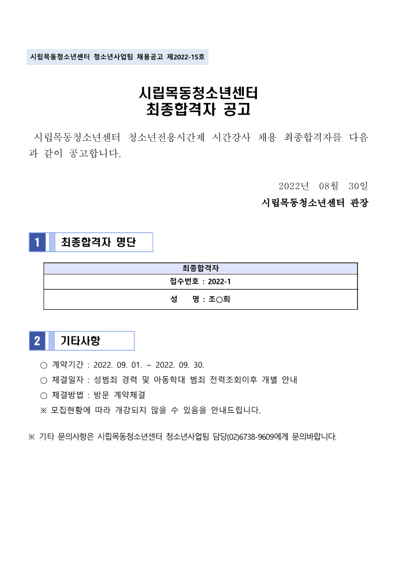 | [½Ã¸³¸ñµ¿Ã»¼Ò³â¼¾ÅÍ] û¼Ò³âÀü¿ë½Ã°£Á¦ ½Ã°£°»ç 4Â÷ ÃÖÁ¾ ÇÕ°ÝÀÚ °ø°í | ||