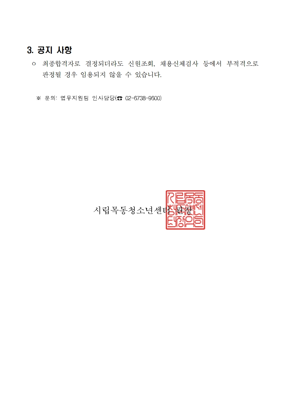 | [½Ã¸³¸ñµ¿Ã»¼Ò³â¼¾ÅÍ] ¾÷¹«Áö¿øÆÀ ¾È³»µ¥½ºÅ©(°è¾àÁ÷) ä¿ë ÃÖÁ¾ ÇÕ°ÝÀÚ °ø°í | ||