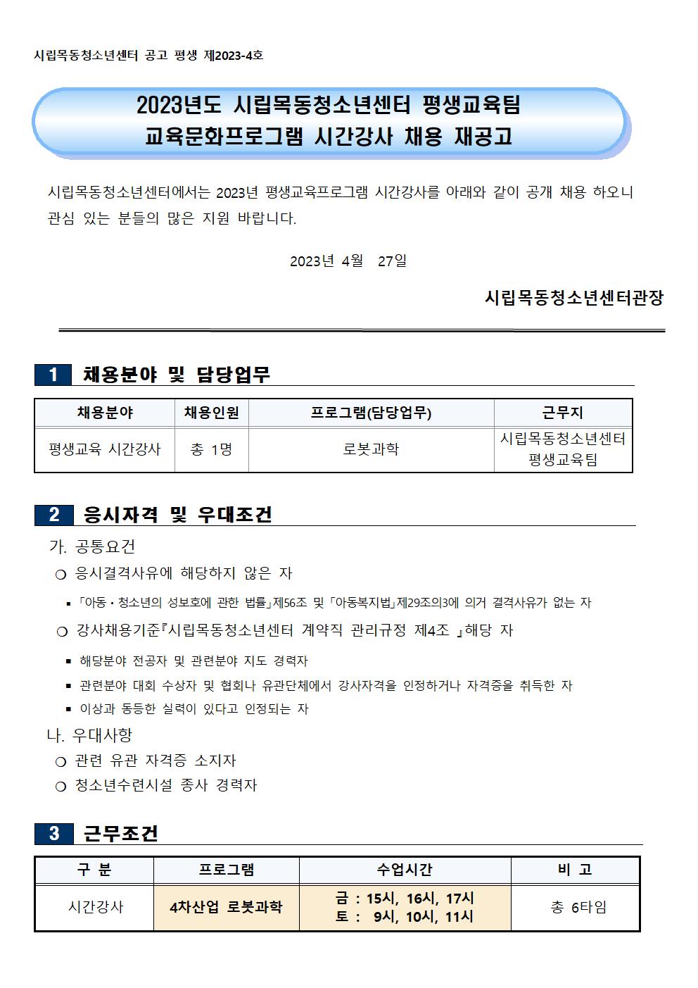 | ´ÙÀ½±Û | [½Ã¸³¸ñµ¿Ã»¼Ò³â¼¾ÅÍ] »ýȰüÀ°ÆÀ ¼ö¿µÀå ½Ã°£°»ç ÃÖÁ¾ÇÕ°ÝÀÚ °ø°í |