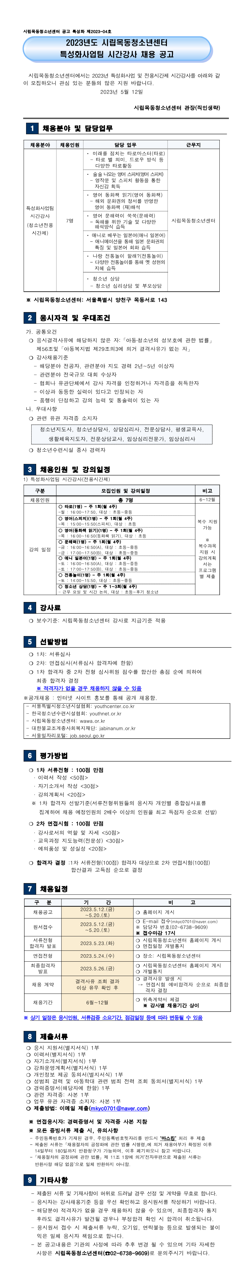 | ´ÙÀ½±Û | [½Ã¸³¸ñµ¿Ã»¼Ò³â¼¾ÅÍ] Ư¼ºÈ»ç¾÷ ¹× û¼Ò³âÀü¿ë½Ã°£Á¦ ½Ã°£°»ç 2Â÷ ä¿ë ÃÖÁ¾ÇÕ°ÝÀÚ °ø°í |