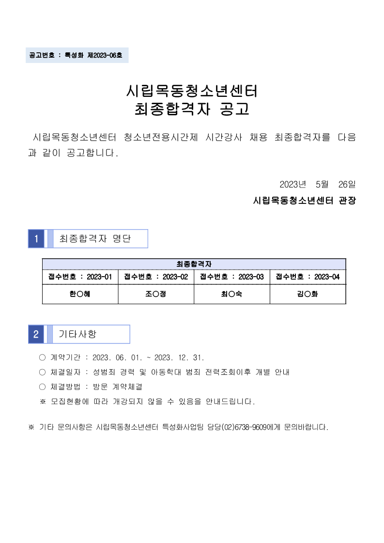 | [½Ã¸³¸ñµ¿Ã»¼Ò³â¼¾ÅÍ] Ư¼ºÈ»ç¾÷ÆÀ ½Ã°£°»ç 3Â÷ ä¿ë ÃÖÁ¾ÇÕ°ÝÀÚ °ø°í | ||