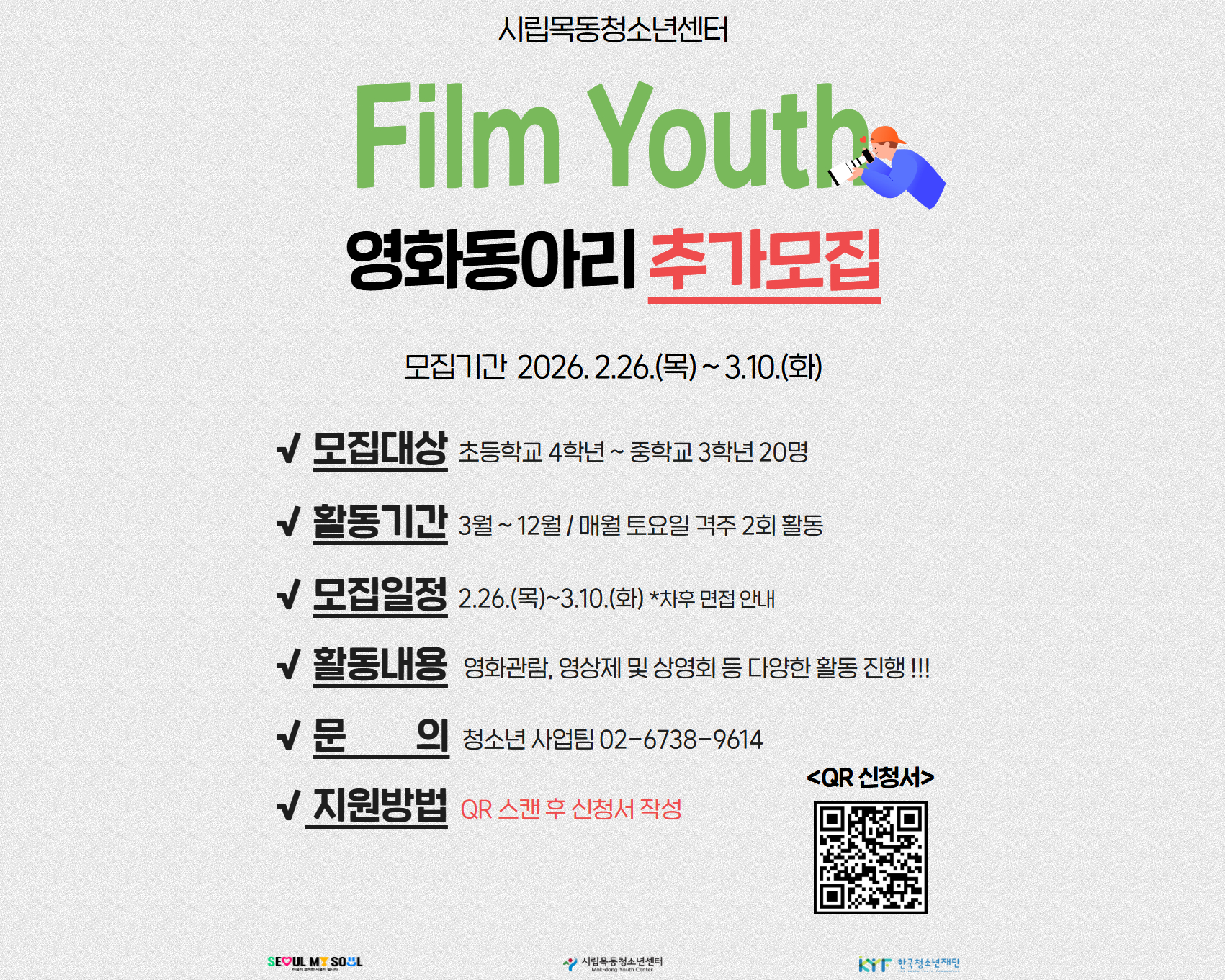 - [¸ðÁý] û¼Ò³â ¿µÈµ¿¾Æ¸® 'Film Youth' ½Å±Ô ´Ü¿ø ¸ðÁý2026.02.26