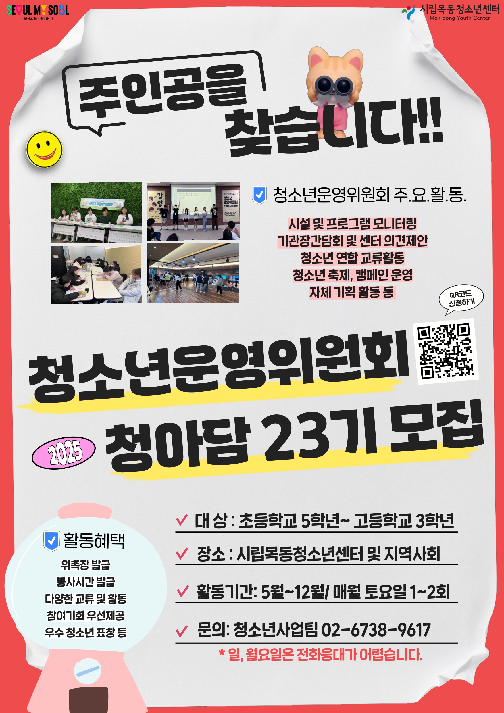 | [¸ðÁý] 2025 ½Ã¸³¸ñµ¿Ã»¼Ò³â¼¾ÅÍ Ã»¼Ò³â¿î¿µÀ§¿øÈ¸ "û¾Æ´ã" ÀýÂù¸ðÁý Áß!!! | ||