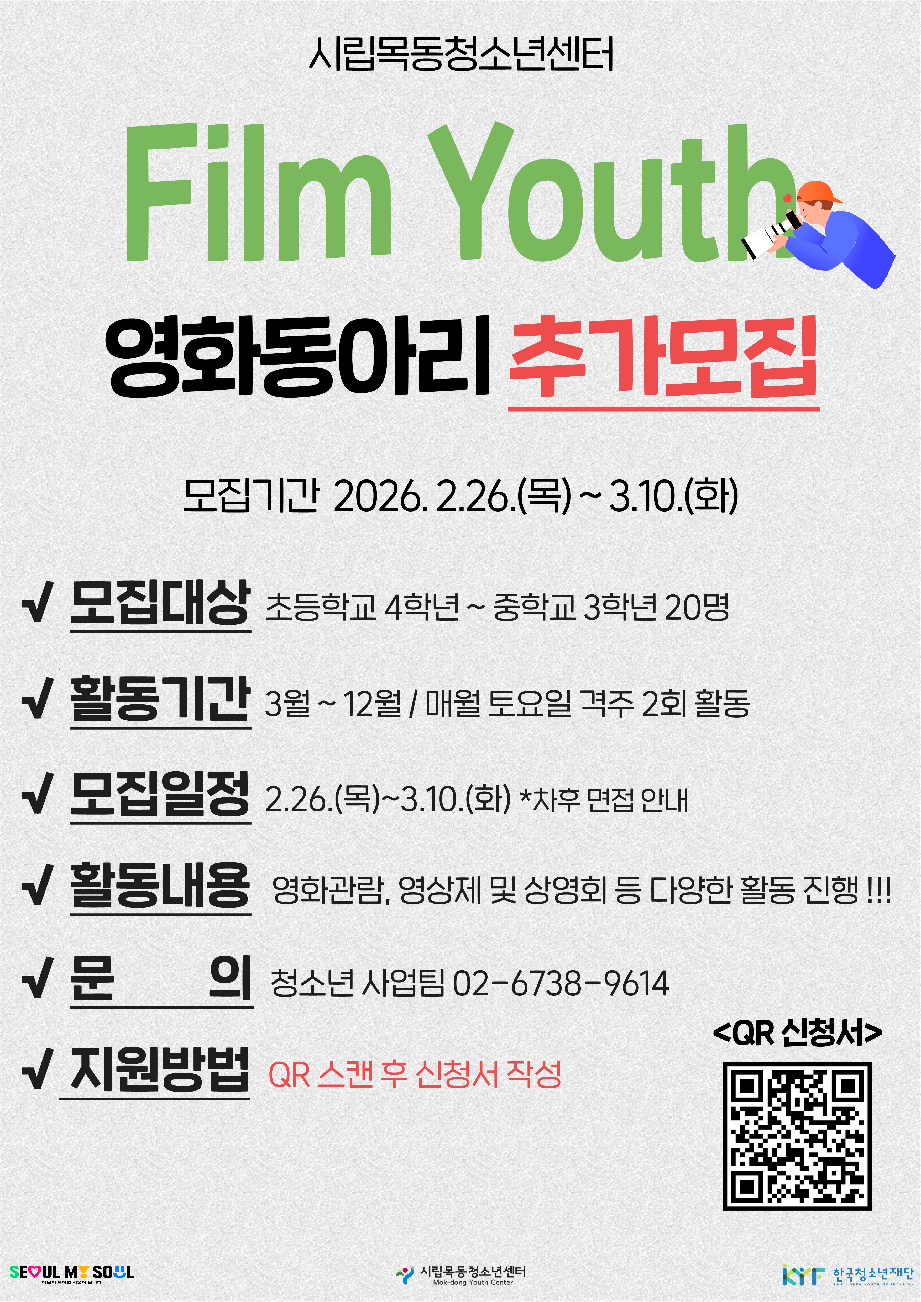 | [¸ðÁý] û¼Ò³â ¿µÈµ¿¾Æ¸® 'Film Youth' ½Å±Ô ´Ü¿ø ¸ðÁý | ||