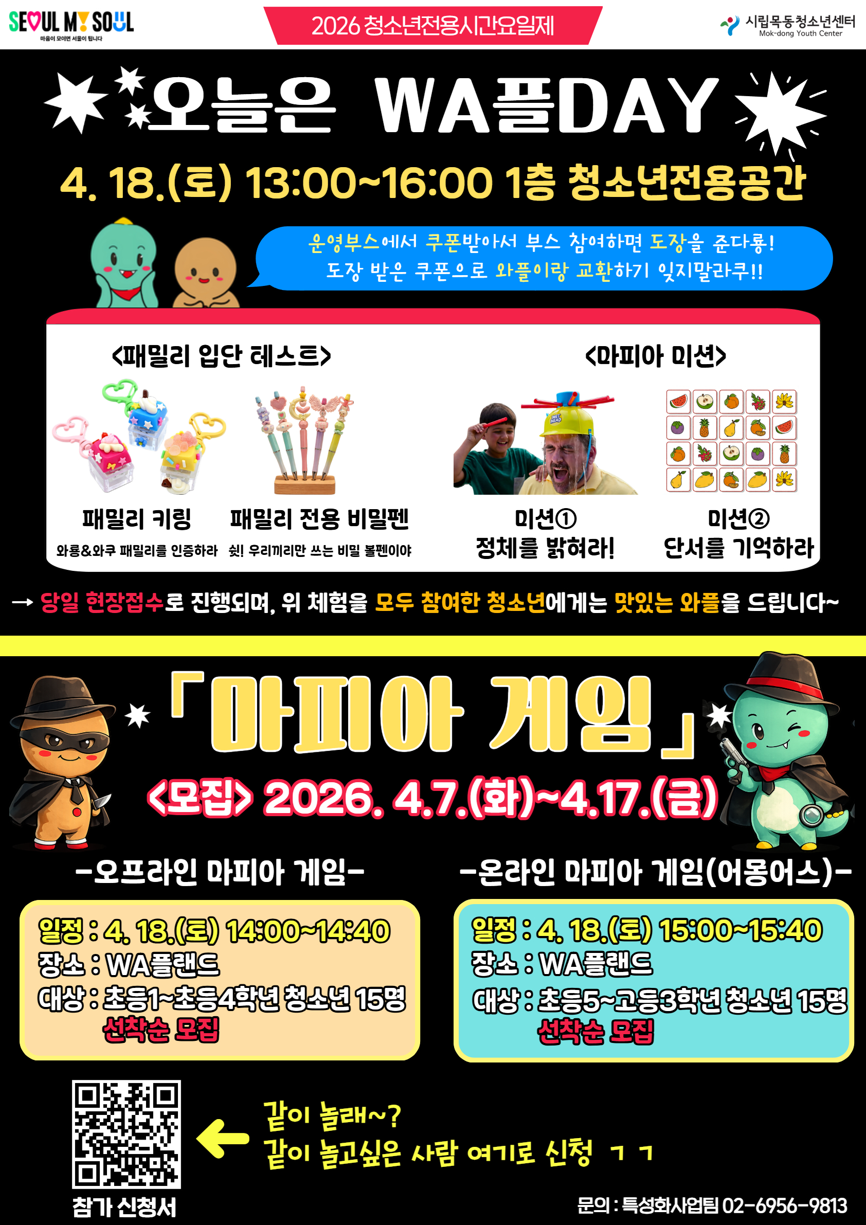 | [¸ðÁý] 2026³â û¼Ò³âÀü¿ë½Ã°£¿äÀÏÁ¦ "¿À´ÃÀº WAÇÃDAY" ¸¶ÇÇ¾Æ °ÔÀÓ Âü°¡ÀÚ ¸ðÁý! | ||