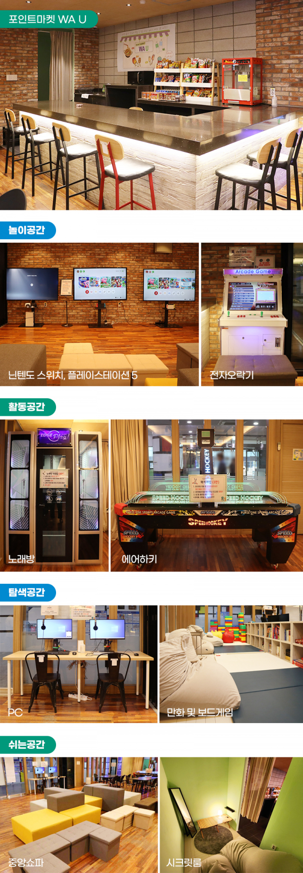 < ³îÀ̰ø°£ > - ´ÑÅÙµµ ½ºÀ§Ä¡ & Ç÷¹À̽ºÅ×À̼Ç5 (30ºÐ) - ÀüÀÚ¿À¶ô±â (1Àδç ÄÚÀÎ 3°³) - PC (30ºÐ) < Ȱµ¿°ø°£ > - ¿¡¾îÇÏŰ (1Àδç ÄÚÀÎ 3°³) - ³ë·¡¹æ (1Àδç ÄÚÀÎ 3°³) < ½¬´Â°ø°£ > - ¸¸ÈÃ¥¹æ - º¸µå°ÔÀÓ - ½ÃÅ©¸´·ë - ½¬´Â°÷ |