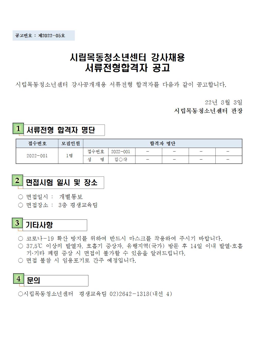 | ÀÌÀü±Û | [½Ã¸³¸ñµ¿Ã»¼Ò³â¼¾ÅÍ] »ýȰüÀ°ÆÀ ¼ö¿µÀå ¾ÈÀü±Ù¹«ÀÚ ÃÖÁ¾ÇÕ°ÝÀÚ °ø°í |