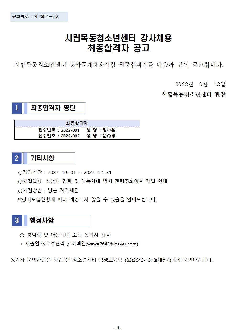 | ´ÙÀ½±Û | [½Ã¸³¸ñµ¿Ã»¼Ò³â¼¾ÅÍ]¼ö¿µÀå ¾ÈÀü±Ù¹« ½Ã°£°»ç¸ðÁý |
