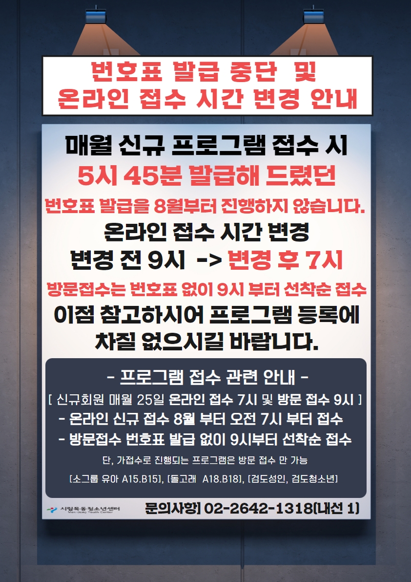 | [½Ã¸³¸ñµ¿Ã»¼Ò³â¼¾ÅÍ] ¹øÈ£Ç¥ ¹ß±Þ Áß´Ü ¹× ¿Â¶óÀÎ Á¢¼ö ½Ã°£ º¯°æ ¾È³» | ||