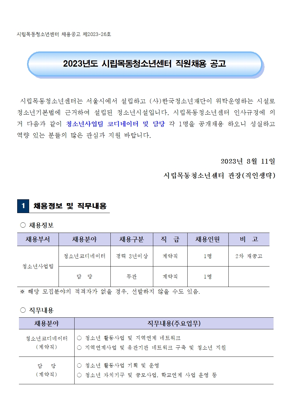 | [ä¿ë°ø°í] û¼Ò³â»ç¾÷ÆÀ ÄÚµð³×ÀÌÅÍ ¹× ´ã´ç Á÷¿ø ä¿ë °ø°í | ||
