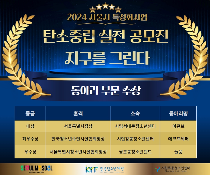 | ´ÙÀ½±Û | 2024³â ¼¿ï½ÃƯ¼ºÈ»ç¾÷ ź¼ÒÁ߸³½Çõ °ø¸ðÀü¡¸Áö±¸¸¦ ±×¸°´Ù¡¹Ç¥¾î - Æ÷½ºÅÍ ºÎ¹® ¼ö»óÀÚ ¹ßÇ¥ |