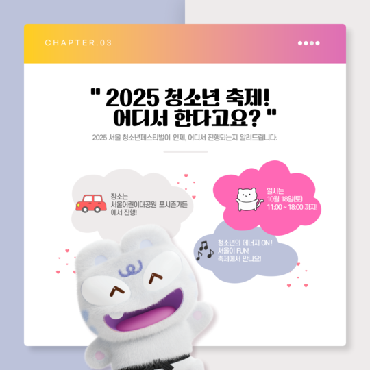| ÀÌÀü±Û | 2025 ¼¿ï û¼Ò³â Æä½ºÆ¼¹ú ¾È³» Vol.4 |