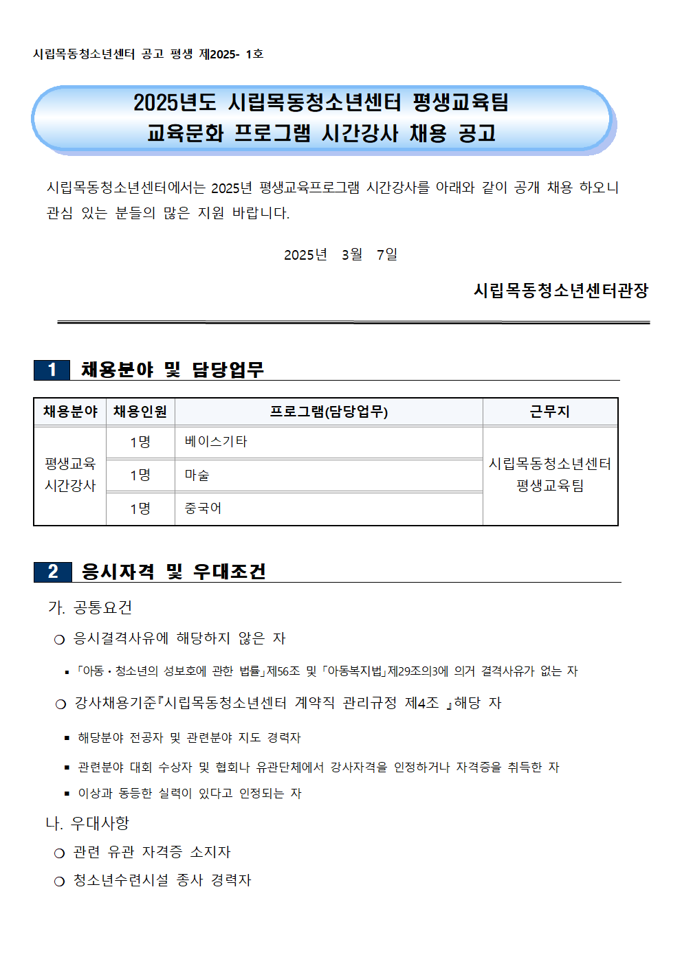 | [½Ã¸³¸ñµ¿Ã»¼Ò³â¼¾ÅÍ] 2025³â Æò»ý±³À°ÆÀ Á¤±Ô°Á °»ç °ø°³Ã¤¿ë °ø°í¹® | ||