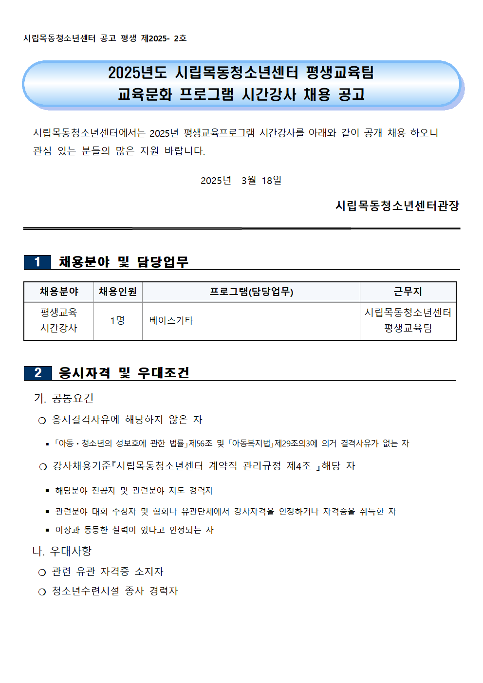 | [½Ã¸³¸ñµ¿Ã»¼Ò³â¼¾ÅÍ] 2025³â Æò»ý±³À°ÆÀ Á¤±Ô°Á °»ç °ø°³Ã¤¿ë °ø°í¹® (Àç°ø°í) | ||