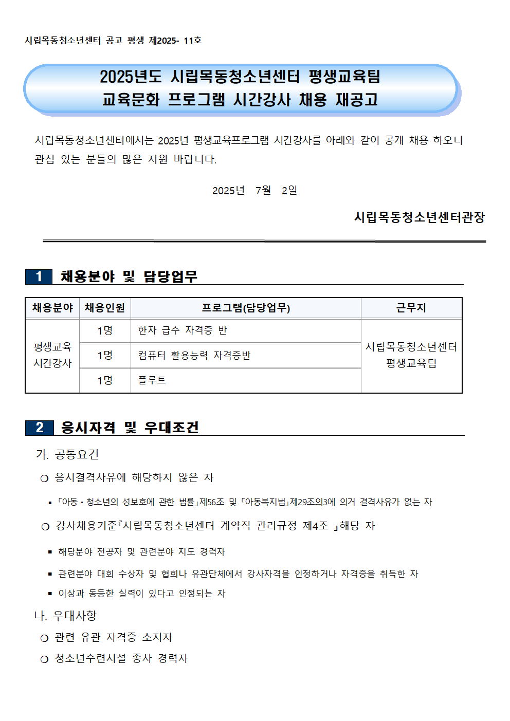 | [½Ã¸³¸ñµ¿Ã»¼Ò³â¼¾ÅÍ] 2025³â Æò»ý±³À°ÆÀ Á¤±Ô°Á °»ç °ø°³Ã¤¿ë °ø°í¹® (Àç°ø°í) | ||