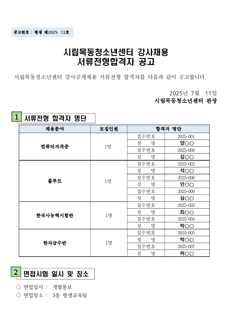 | [½Ã¸³¸ñµ¿Ã»¼Ò³â¼¾ÅÍ] 2025³â Æò»ý±³À°ÆÀ ±³À°¹®È Á¤±Ô°Á ½Ã°£°»ç ¼·ùÀüÇü ÇÕ°ÝÀÚ °ø°í(4Â÷) | ||