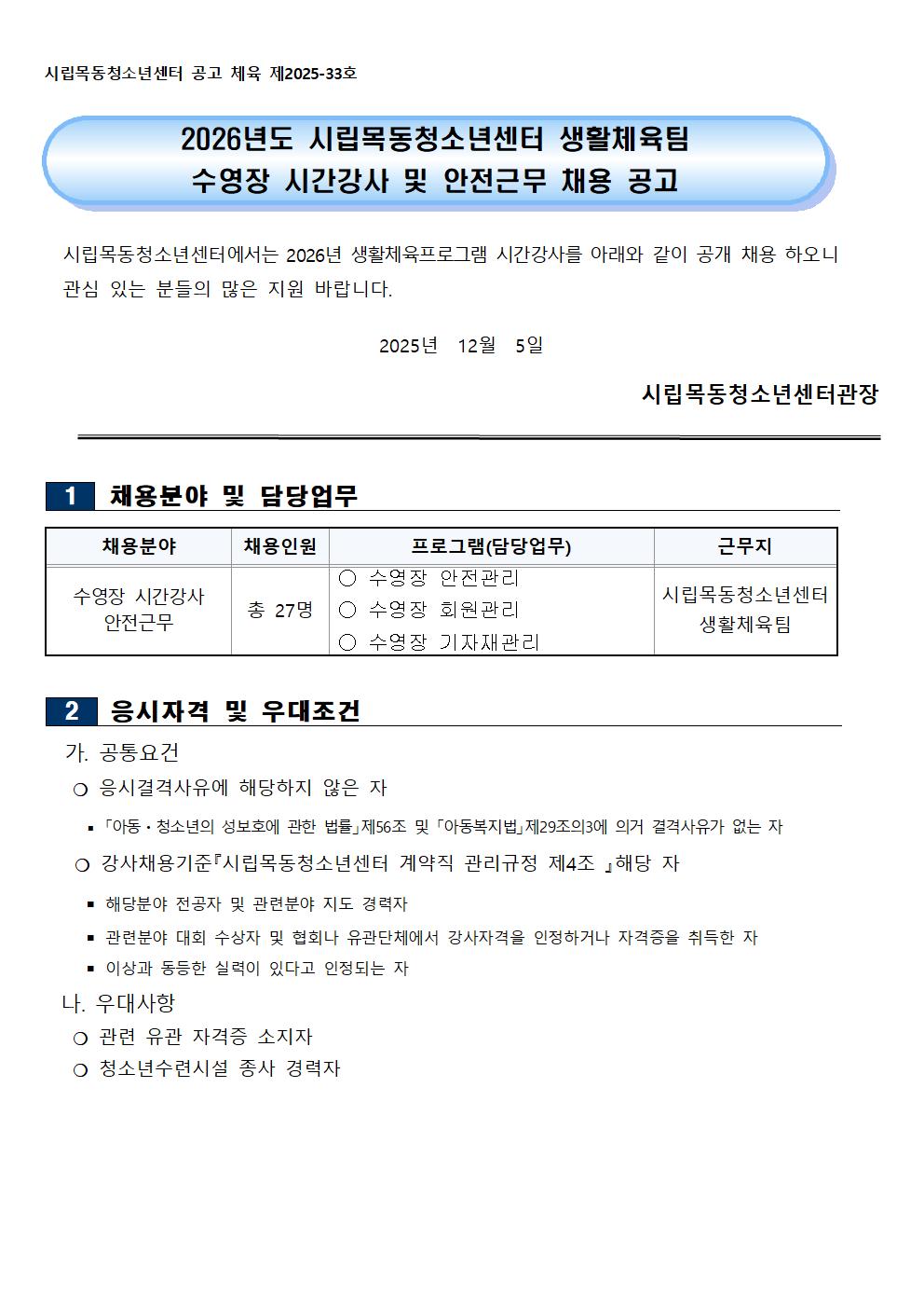 | ´ÙÀ½±Û | [½Ã¸³¸ñµ¿Ã»¼Ò³â¼¾ÅÍ]»ýȰüÀ°ÆÀ ¼ö¿µÀå ½Ã°£°»ç ¼·ùÀüÇü ÇÕ°ÝÀÚ °ø°í |