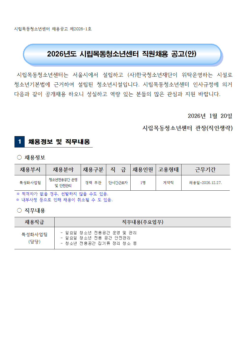 | 2026³âµµ ½Ã¸³¸ñµ¿Ã»¼Ò³â¼¾ÅÍ Á÷¿øÃ¤¿ë °ø°í(û¼Ò³âÀü¿ë°ø°£¿î¿µ-´Ü½Ã°£±Ù·ÎÀÚ) | ||