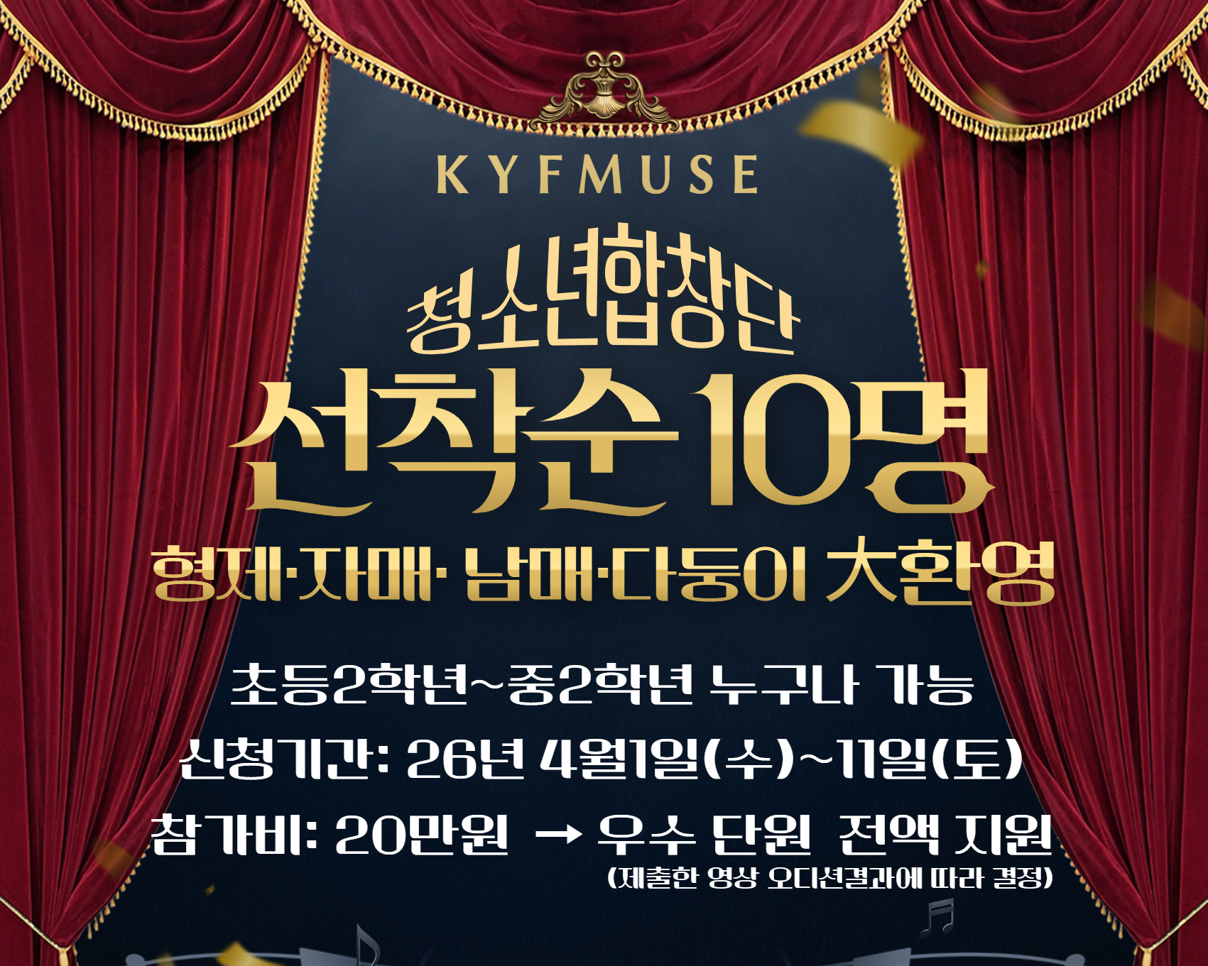 - [Ãß°¡¸ðÁý] KYF¹ÂÁî û¼Ò³â ÇÕâ´Ü ´Ü¿ø ¸ðÁý(¼±Âø¼ø 10¸í)2026.04.01
