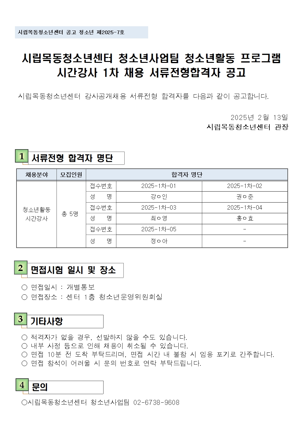 | [½Ã¸³¸ñµ¿Ã»¼Ò³â¼¾ÅÍ] û¼Ò³â»ç¾÷ÆÀ û¼Ò³âȰµ¿ ½Ã°£°»ç ¼·ùÇÕ°ÝÀÚ °ø°í | ||