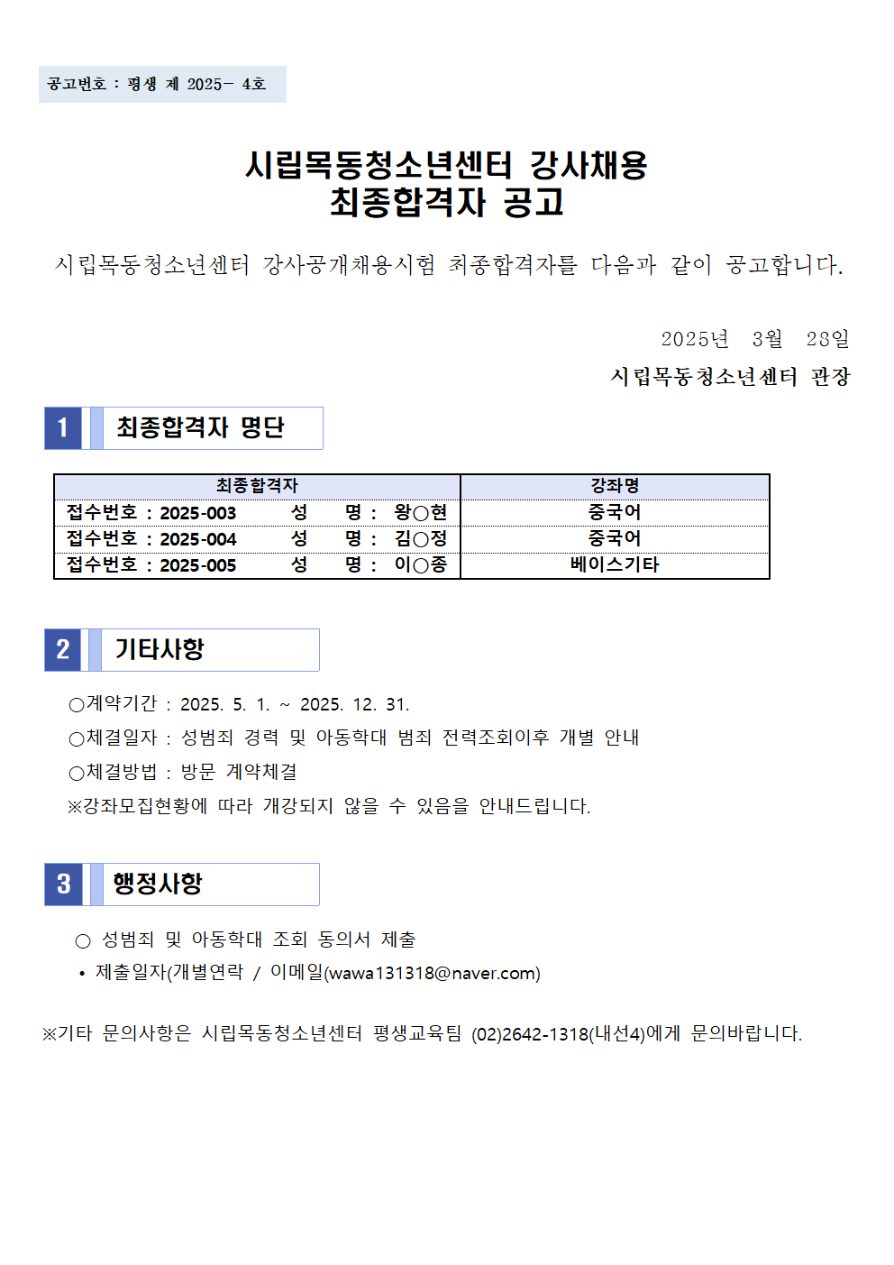 | ÀÌÀü±Û | 2025³âµµ ½Ã¸³¸ñµ¿Ã»¼Ò³â¼¾ÅÍ Á÷¿øÃ¤¿ë Àç°ø°í ¼·ùÀüÇü ÇÕ°ÝÀÚ °ø°í(¼¿ï½Ã Çູµ¿ÇàÇб³ ÃѰý ÇÁ·ÎÁ§Æ® ¸Å´ÏÀú ¹× »ç¾÷ ´ã´ç) |